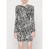 Vestito corto da donna in misto viscosa in fantasia leopardata a sfondo rosso. Logo Love Moschino all-over, maniche lunghe e scollo a V. Dettaglio di ruches sul davanti e sulle maniche. Vestibilità aderente.
