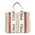 Chloè borsa Woody a tracolla in tessuto e pelle di vitello, stampa logo su entrambi i lati, tracolla regolabile e tasca interna