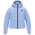 Refrigiwear giacca leggera in tessuto tecnico, colore rosa, con cappuccio elasticizzato e imbottitura in vera piuma di anatra. Tasche laterali aperte e chiusura frontale a zip.