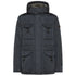Peuterey field jacket in nylon cangiante con imbottitura in piuma, chiusura a zip e bottoni automatici, cappuccio fisso con collo di pelliccia di coniglio staccabile, quattro tasche frontali, coulisse in vita e sul cappuccio