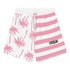 Comme Des Fuckdown pantaloncini con coulisse e tasche laterali, stampa a striscie e palme rosa, stampa logo nera