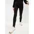 Love Moschino jeans elasticizzato nero sovratinto, con coloritura uniforme. Tessuto particolarmente morbido, con estastomultiestere. Leggermente scolorito in vita. Linea slim, asciutto sulla gamba, vita medio-alta. Fondo con risvoltino a contrasto più chiaro. Chiusura con cerniera e bottone. Modello cinque tasche. Etichetta in pelle verniciata nera, con logo a contrasto bianco.
