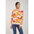 Patrizia Pepe,maglione girocollo, con stampe multicolor e logo ricamato in basso a sinistra.
