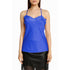 Patrizia Pepe top in satin blu royal con sottili spalline regolabili e scollo rifinito in pizzo tono su tono. Il retro presenta un’ampia scollatura con dettaglio in pizzo e spalline incrociate