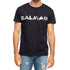 Balmain t-shirt a maniche corte in cotone blu scuro con stampa logo lucida