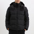 ADD giaccone con cappuccio staccabile di colore nero con scritta add sul retro “ton sur ton”ed imbottitura di vera piuma d'oca