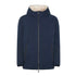 Suns giubbotto reversibile da uomo con doppia anima: lato liscio con tasche a filetto e zip termosaldate, lato trapuntato per un look sportivo e strutturato. Cappuccio fisso su entrambi i lati, fondo con bordo elastico per maggiore aderenza, chiusura con zip waterproof reversibile a doppio cursore. Dettaglio distintivo: pinnetta arancione fluo sul fianco destro, simbolo iconico del brand Suns.