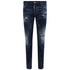 Dsquared2 jeans Slim Jean blu leggermente slavato, dettagli di strappi ed usure, cinque tasche, patch logo in pelle marrone sul retro