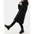 ADD Piumino lungo di colore nero in tessuto tecnico idrorepellente, chiusura con zip a doppio cursore , collo con cappuccio, interno di 90% piuma d'oca e 10% piuma d'anatra