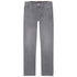 Tramarossa jeans grigio di alta sartoria in cotone leggermente elasticizzato con dettagli cuciture bianche, vestibilità regular, modello a cinque tasche, patch in pelle scamosciata grigia con logo metallico sul retro